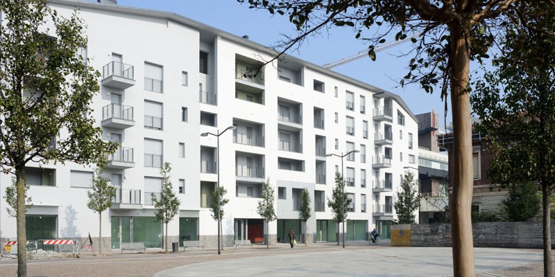 All the apartments were designed to be certified as energy class B CENED. The housing complex is developed around a green central courtyard, which is overlooked by a shared space for the use of the residents. The intervention includes commercial and neighbourhood services which are based on the ground floor of the building and which open onto the public pedestrian square, and it is bordered by Via della Vecchia Dogana to the north and by pedestrian footpaths on the other sides. The development of Opifici Ventidue was accompanied by a detailed study of the form and of the materials to be used for the exterior architectural elements, as well as for the interiors of the apartments, in line with the highest quality standards.